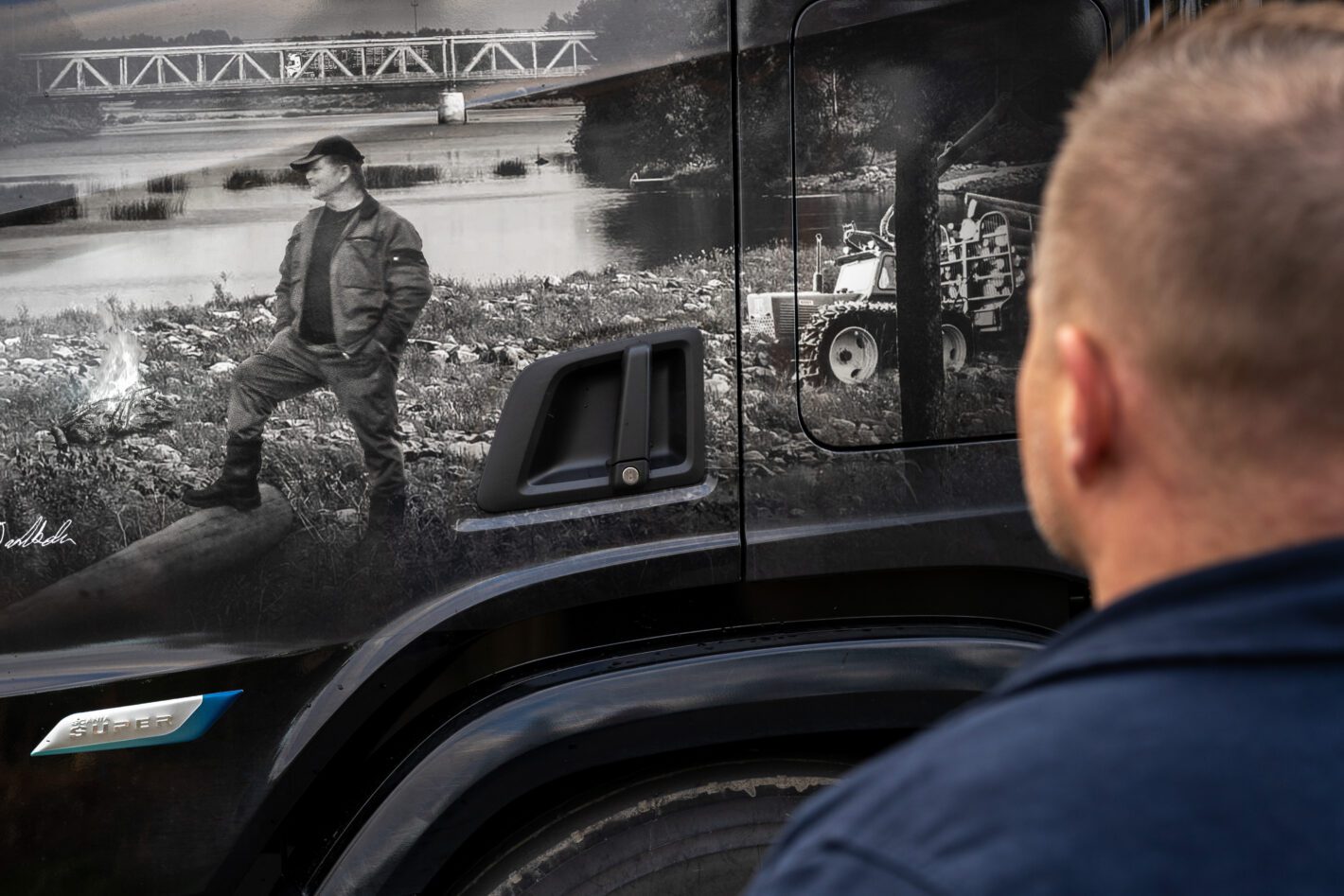 taustalla olevalla sillalla ajaa Heikin ensimmäinen puuauto.