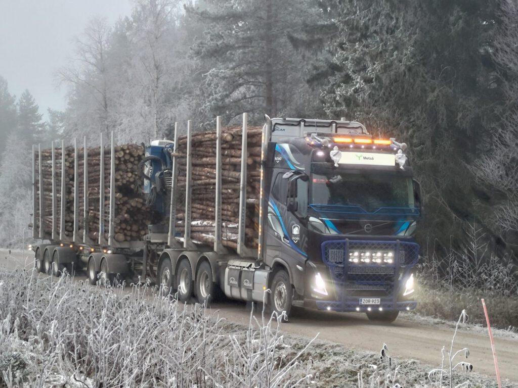 1952 vuodesta lähtien raakapuun kuljetusta Metsä Groupille jo kolmannessa polvessa kahden auton yhdistelmällä.